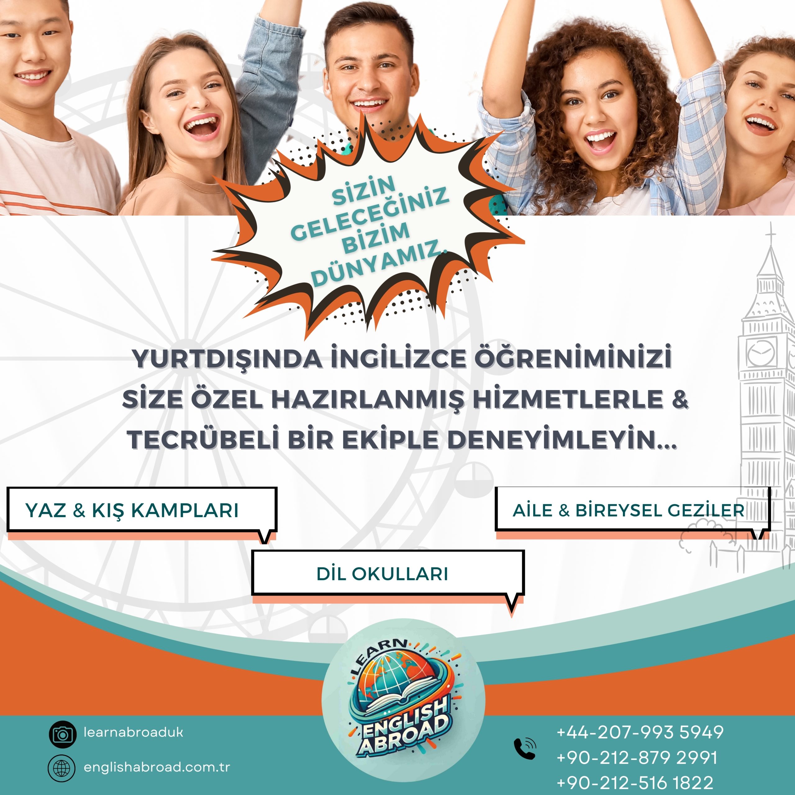 Londra merkezli kurulan Learn English Abroad, Kurumlar, K-12’ler ve bireyler için 7/12 hizmetleri sunmaya hazırdır.